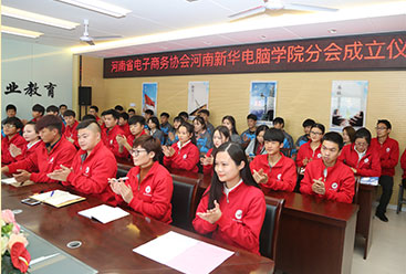 河南省电子商务协会是由河南省工业和信息化委员会主管的面向全省电子商务的全省性社团组织。河南省电子商务协会河南新华电脑 学院分会的成立标志着学院电子商务人才培养迈入新阶段,河南新华电脑学院电子商务协会将在其指导下辅助学校电子商务专业教学, 将搭建校内师生与行业、企业之间的交流沟通平台,搭建校内师生的实训平台、就业平台和创业平台,帮助电子商务相关专业学生提高 实践及创业创新能力。