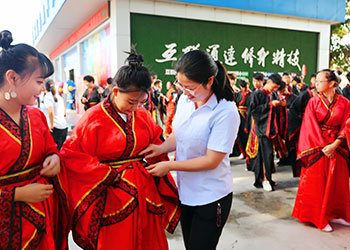 8月17日上午,河南新华电脑学院举办2018年度“成在新华,梦想起航”新生成人礼活动,百余名新生身着汉服,在老师、父母的见证下,以传统的仪式向青春致敬,开启自己的人生新征程。
